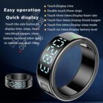 2025 New Version fitness ring with Touch Display & Multifunctional LED Display: Experience seamless device management with a high-definition LED screen and intuitive touch control. With a simple tap, you can effortlessly monitor essential data such as time, step count, heart rate, blood oxygen, sleep, and battery without needing to constantly take out your phone. Designed for ultimate convenience, our fitness tracker ring is perfect for work and fitness