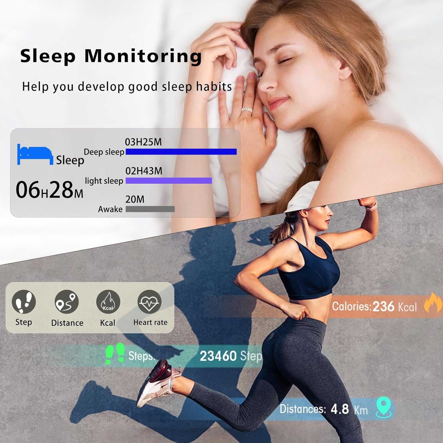 Fast Bluetooth Connectivity & No Subscription Fees:Effortlessly sync your fitness tracker ring with your smartphone via Bluetooth in seconds, you can conveniently manage and view your data directly from your smartphone. The accompanying RJing app is completely free to download and use, with no hidden charges, ensuring you can easily monitor your health and fitness data without any additional cost. Enjoy a hassle-free setup and an intuitive experience right from the start!